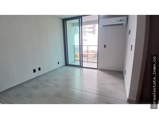 El apartamento ofrece 1 recámara principal, opción a segunda recámara, 1 baño completo, sala-comedor, cocina integrada, un pequeño balcón y lavandería.